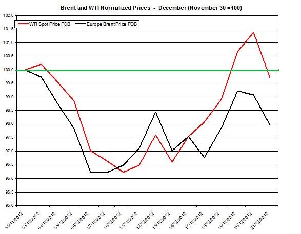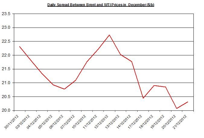 oil forecast Brent and WTI spot rates  2012  December 24-28