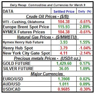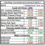 Crude oil price WTI spot closed the market with a moderate fall, while Brent oil bounced back, as the gap between the two commodities’ prices widen; gold and silver prices inclined, and natural gas spot price continue to zigzag as…