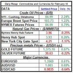 Let’s quickly review the changes in major energy commodities market and precious metals for February 15th: Oil and Gas prices: Natural gas spot price (Henry Hub) after declining for seventh straight business days, it broke its fall yesterday with a…