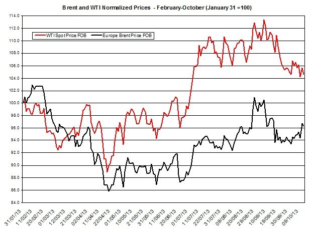 According to the recent report, OECD’s industry oil inventories for August fell by 7.8 mb to 2,660 mb. The high US refinery crude in September raised the global throughput estimate for the third quarter of 2013. Global oil supplies fell by 625 thousand bbl/d to 91.12 million bbl/d during September due to lower OPEC output. The demand strength has raised the 2013 oil demand outlook by 90 thousand bbl/d, to 91.0 million bbl/d. Demand growth is expected to reach 1.0 million bbl/d during the year.