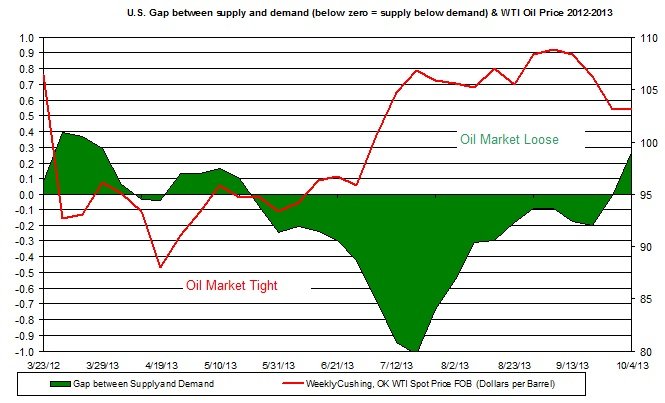As seen above, the looser oil market in the U.S coincides with the decline of oil price.