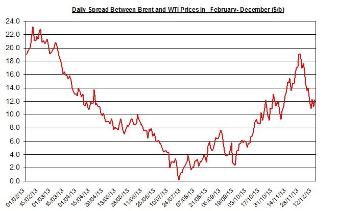 The gap between Brent and WTI oil also fell last week as it ranged between $10.87 and $13.96 per barrel. During the week, the premium fell by $1.73 per barrel.