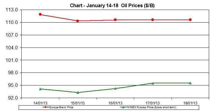 NYMEX Oil Future (short term delivery) reached $95.56/b by Friday, January 18th.