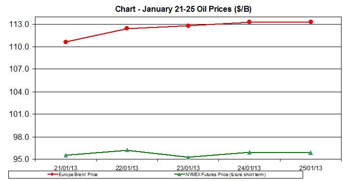 NYMEX Oil Future (short term delivery) reached $95.88/b by Friday, January 25th.
