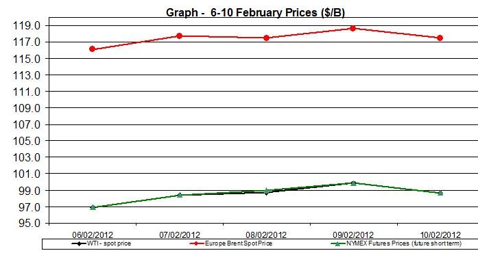 NYMEX Futures Price (March delivery) also slightly increased by 0.85% during the week, and reached $98.67/b on Friday, February 10th