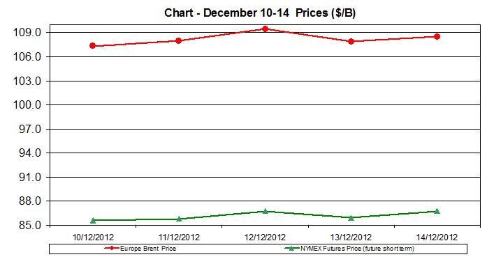 NYMEX Oil Future (short term delivery) reached $86.73/b by Friday, December 14th.