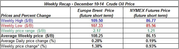 Here is a short analysis for the price developments in oil prices (Brent and WTI) between December 10th and December 14th and a summary of the latest EIA review on petroleum and oil stockpiles: