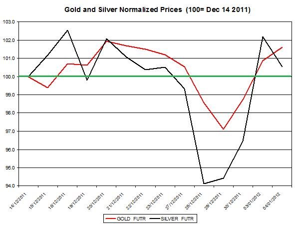 Ratio Gold price forecast & silver price outlook 2012 January 5St. Deviation Gold and Silver