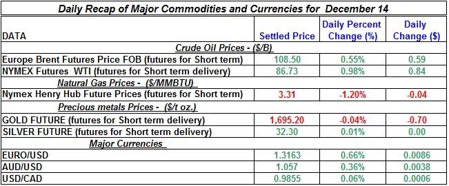 Here is a summary of the daily developments of precious metals and energy commodities for December 14th, 2012: