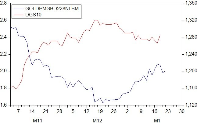 The chart below shows the movement of 10 year treasury yield and gold prices over the past three months. As you can see, both of these assets starts to reverse course of the Trump trade around the middle of December – around the time the FOMC raised rates. This could imply the Fed still maters in this market even though the fiscal side has become relevant again – after it hadn’t been for a long time in the U.S.