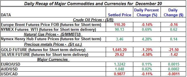 Here is a summary of the daily developments of precious metals and energy commodities for December 20th, 2012: