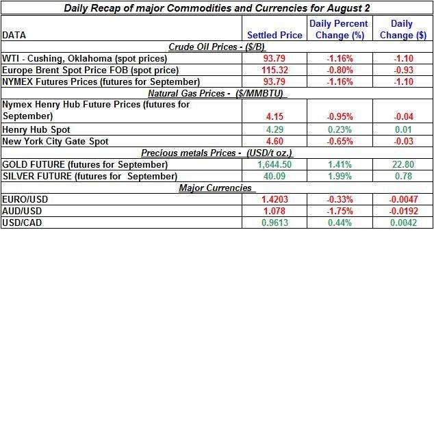 Here is a summary of the price movements of precious metals and energy commodities for August 2nd: