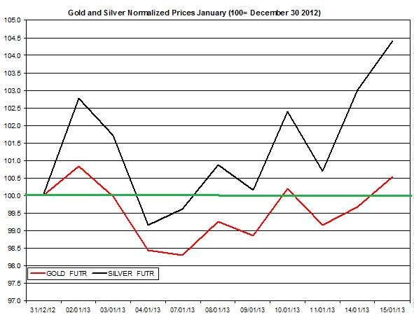 As seen below, the chart shows the changes in the normalized prices of precious metals during the month (normalized to 100 as of December 30th). During recent days silver and gold had a modest upward trend.
