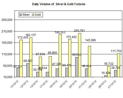 The prices of gold and silver remained nearly unchanged in recent days as they have shifted with an unclear trend. This low movement is likely to continue especially as the trading volume is picking up following the holiday break. The recent U.S reports including new home sales and jobless claims may have contributed to the strengthening of the USD against some currencies and thus may have curbed the recent rise in the prices of gold and silver. Nonetheless, as long as the movement of precious metals remains low, this could be just a matter of market shifts or noise. The FOMC decisions launch QE3, QE3 plus didn’t seem to rally the price of precious metals for now and might start to positively affect them in the months to follow. The debates around the fiscal cliff also seem, for the time being, to have little effect on precious metals or foreign exchange rates. The upcoming reports regarding U.S pending home sales, and French consumer spending could affect not the USD and Euro, respectively Moreover, if pending home sales will show the U.S economy is expanding, it could pull down gold and silver prices. Finally, if the Euro and other “risk currencies” will rally during the day against the USD, they are likely to help rise precious metals.
