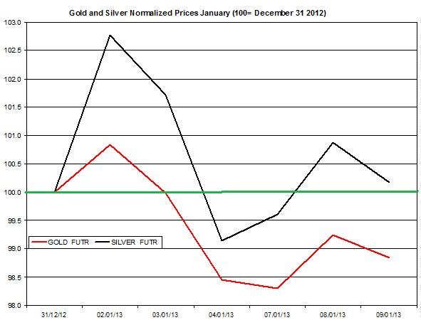 As seen below, the chart presents the shifts in the normalized prices of precious metals during January (normalized to 100 as of December 31st). During recent days, the prices of silver and gold have moved with an unclear trend.