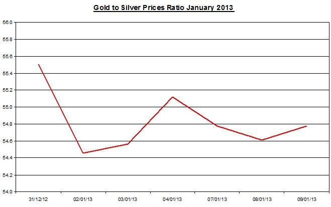 The ratio between the two precious metals edged up on Wednesday to 54.78. During the month, the ratio slipped by 1.32% as gold has under-performed silver.