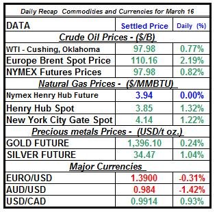 Let’s review the main price changes in major energy commodities and precious metals for March 16th: