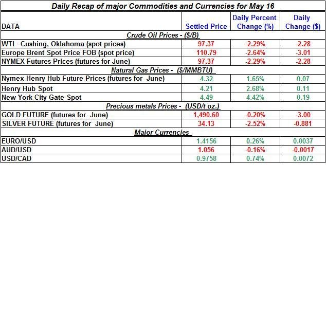 Here is a summary of the main price changes in commodities and precious metals for May 16th: