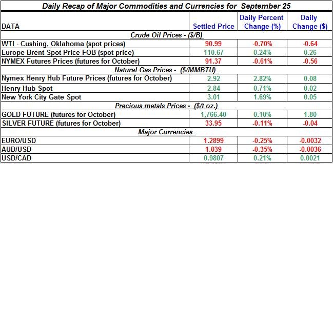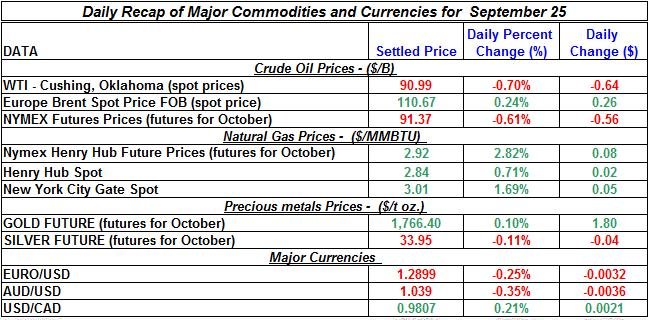 Here is a summary of the daily developments of precious metals and energy commodities for September 25th, 2012: