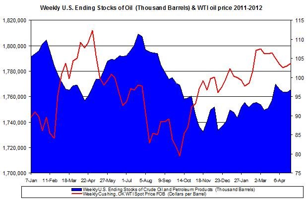 Weekly U.S. Ending Stocks Crude Oil and WTI spot oil price 2012 May 3Petroleum production and imports (for the week of April 27th)
