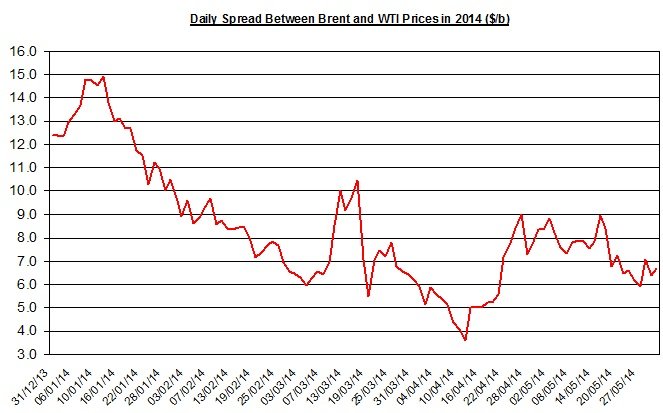 Premium of Brent over WTI – May/June
