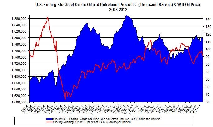 For the week ending on October 5th, U.S. Petroleum and crude oil stockpiles declined again by 4.3 million barrels and reached 1,792 million barrels. The current oil stockpiles are higher than the quota as of last year: the current crude oil stockpiles are 22.9 million barrels above oil stockpiles levels of the parallel week during 2011.