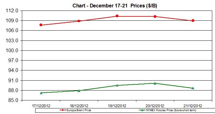 NYMEX Oil Future (short term delivery) reached $88.66/b by Friday, December 21st.