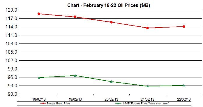 NYMEX Oil Future (short term delivery) reached $93.13/b by Friday, February 15th.