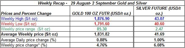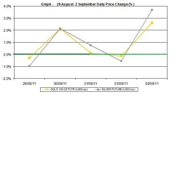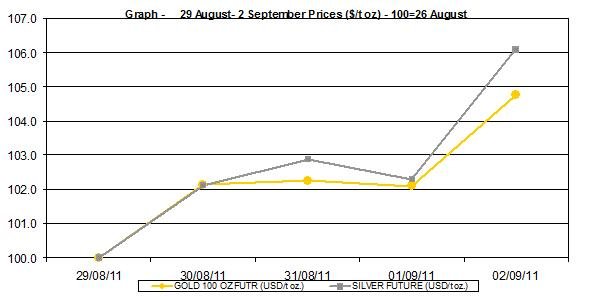 Here is a short review of the changes in gold and silver prices during the week of August 29th to September 2nd 2011: