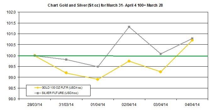 Here is a short review of the recent developments in precious metals prices between March 31st and April 4th: