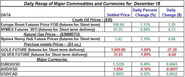 Here is a summary of the daily developments of precious metals and energy commodities for December 18th, 2012: