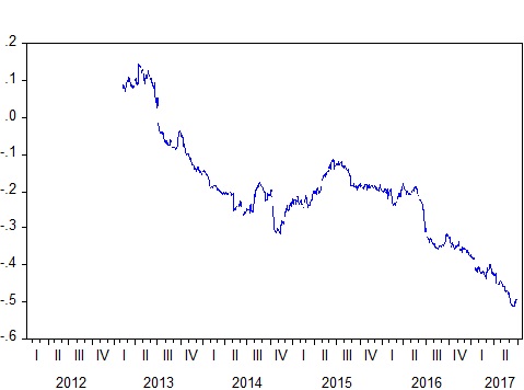 Even so, the main factor that impacts the direction gold is still the USD. The table below shows the coefficients of USD and 10 year treasury yield for the percent changes of gold prices for this year, up to date.