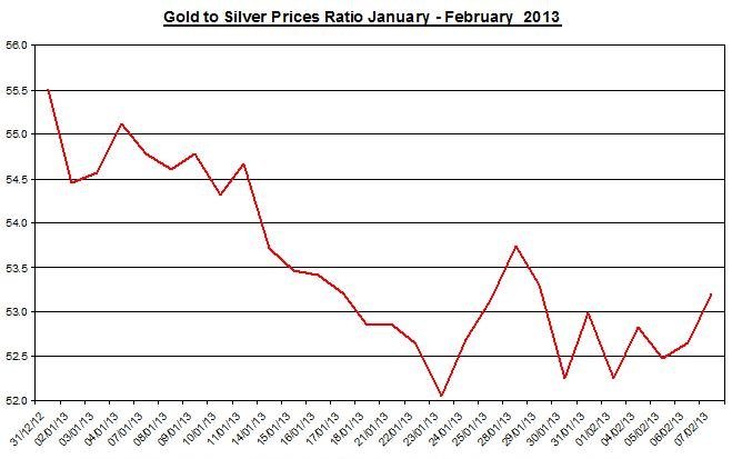 The ratio between the two precious metals rallied on Thursday to 53.2. During the month, the ratio rose by 0.38% as gold slightly out-performed silver.