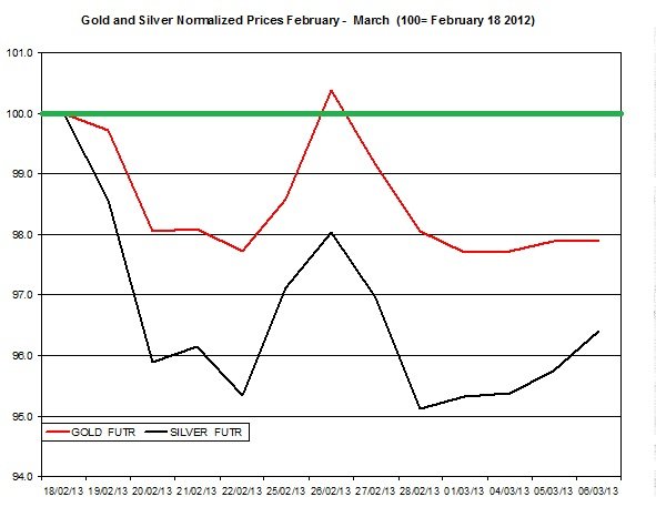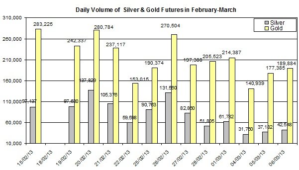 volume Gold & silver prices 2013  March 7Currencies / Bullion Market – March Update