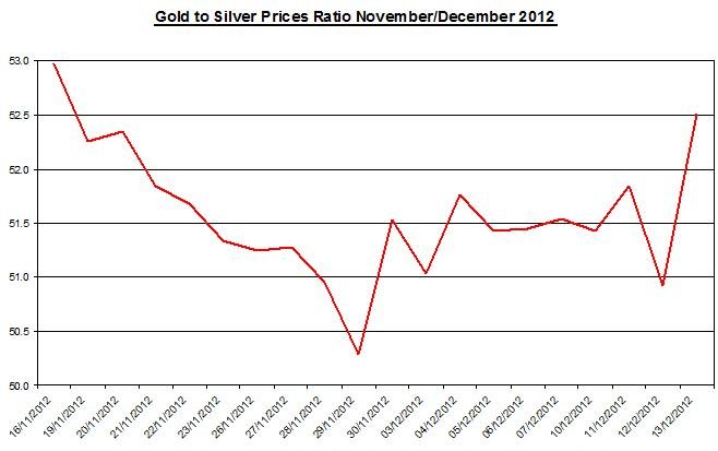 The ratio between the two precious metals rose on Thursday and reached 52.51. During the month, the ratio increased by 1.9% as gold slightly out-performed silver.