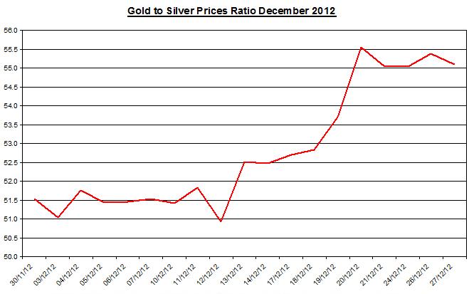 The ratio between the two precious metals slightly slipped to 55.09. During the month, the ratio rose by 6.91% as gold out-performed silver.
