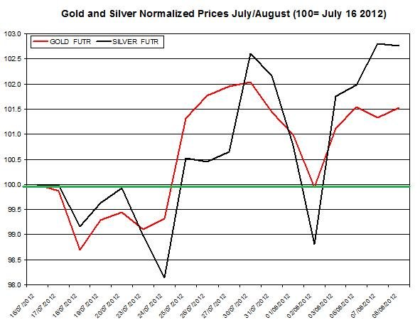 Precious metals prices, much like many other commodities, continue to zigzag with an unclear trend. This could be, among others, due to the London Olympics that shifted the attention of many traders to this prime even. The price of gold edged up on Wednesday while silver slipped. The Euro an many other risk currencies continued to depreciate against the USD. Currently, gold and silver prices are falling. On today’s agenda: ECB Monthly Bulletin, American and Canadian Trade Balance reports, and U.S. Jobless Claims.