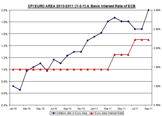 CPI EURO AREA 2008-2011 (Y-2-Y) & Basic Interest Rate of ECB October 3