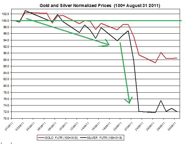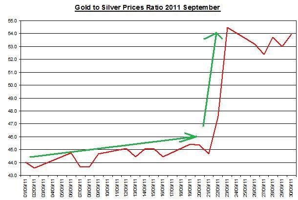 Gold price and Silver prices ratio 2011 September October 3