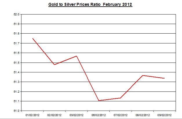 The ratio between gold and silver slightly fell on Thursday, February 9th and reached 51.34. During February the ratio fell by 1.89% as silver slightly outperformed gold. In the chart below is the development of this ratio during February.