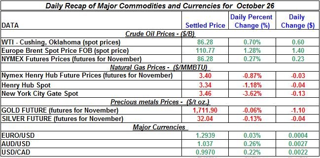Here is a summary of the daily developments of precious metals and energy commodities for October 26th, 2012: