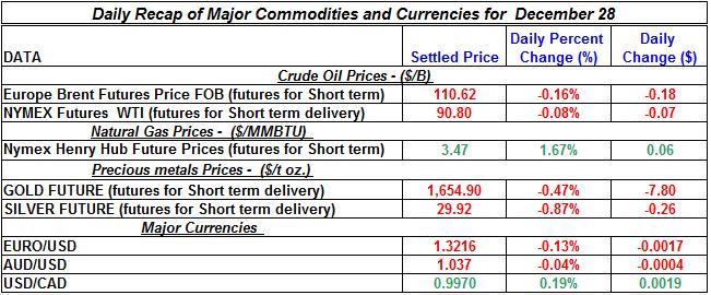 Here is a summary of the daily developments of precious metals and energy commodities for December 28th, 2012: