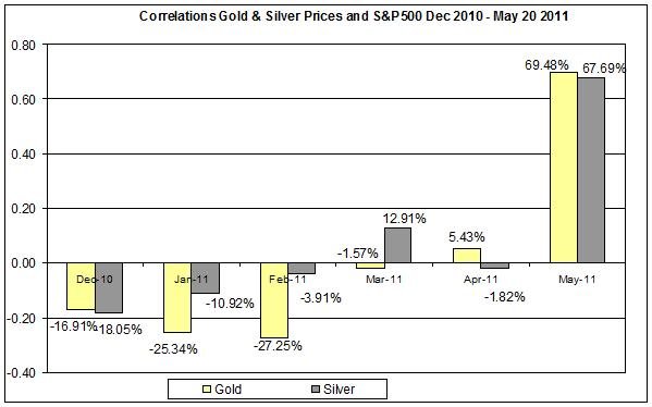 The S&P500 gold and silver prices during May
