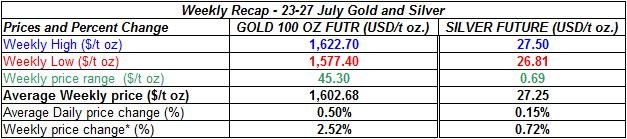 Here is a short recap of the changes in Bullion between July 23rd and July 27th: