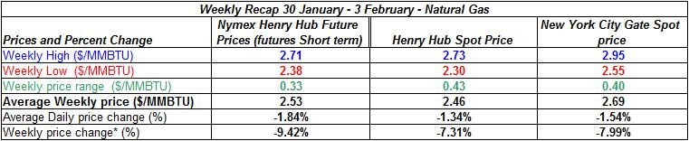 Here is a short recap for the developments of natural gas price for the week ending on February 3rd, the first week of February: