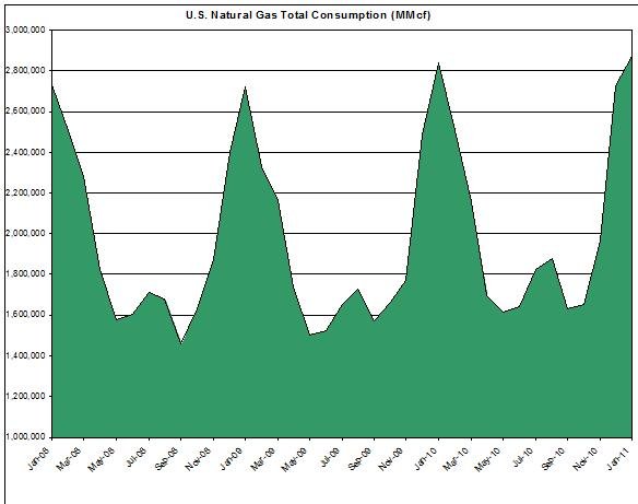 The chart below shows the seasonally of natural gas’s demand during 2010-2011:
