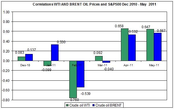 The correlations were strong as crude oil prices and S&P500 fell at the beginning of May and by the end of the month started to pick up.
