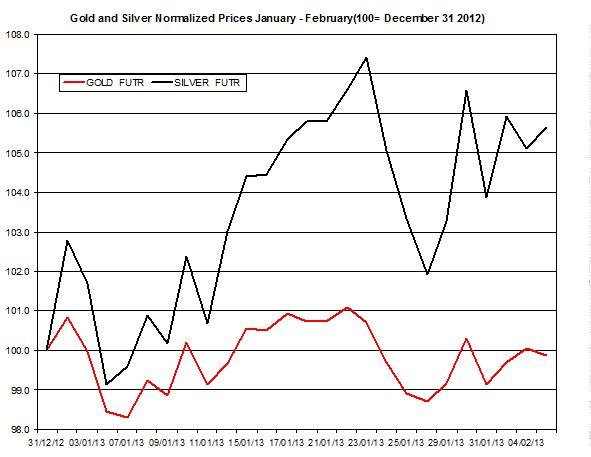 As seen below, the chart presents the shifts in the normalized prices of precious metals between January and February (normalized to 100 as of December 31st). During recent weeks, the rates of silver and gold have had an unclear trend.