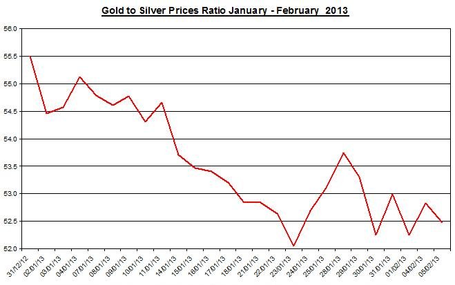 The ratio between the two precious metals slipped on Tuesday to 52.48. During the month, the ratio declined by 0.97% as gold slightly under-performed silver.