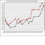 Yesterday, natural gas spot price (Henry Hub) rose precipitately by nearly 5%, while April delivery future prices declined by 0.45%, resulting in the premium of future prices over spot reachinf four cents/MMbtu a drop from 27 cents on Friday, March…